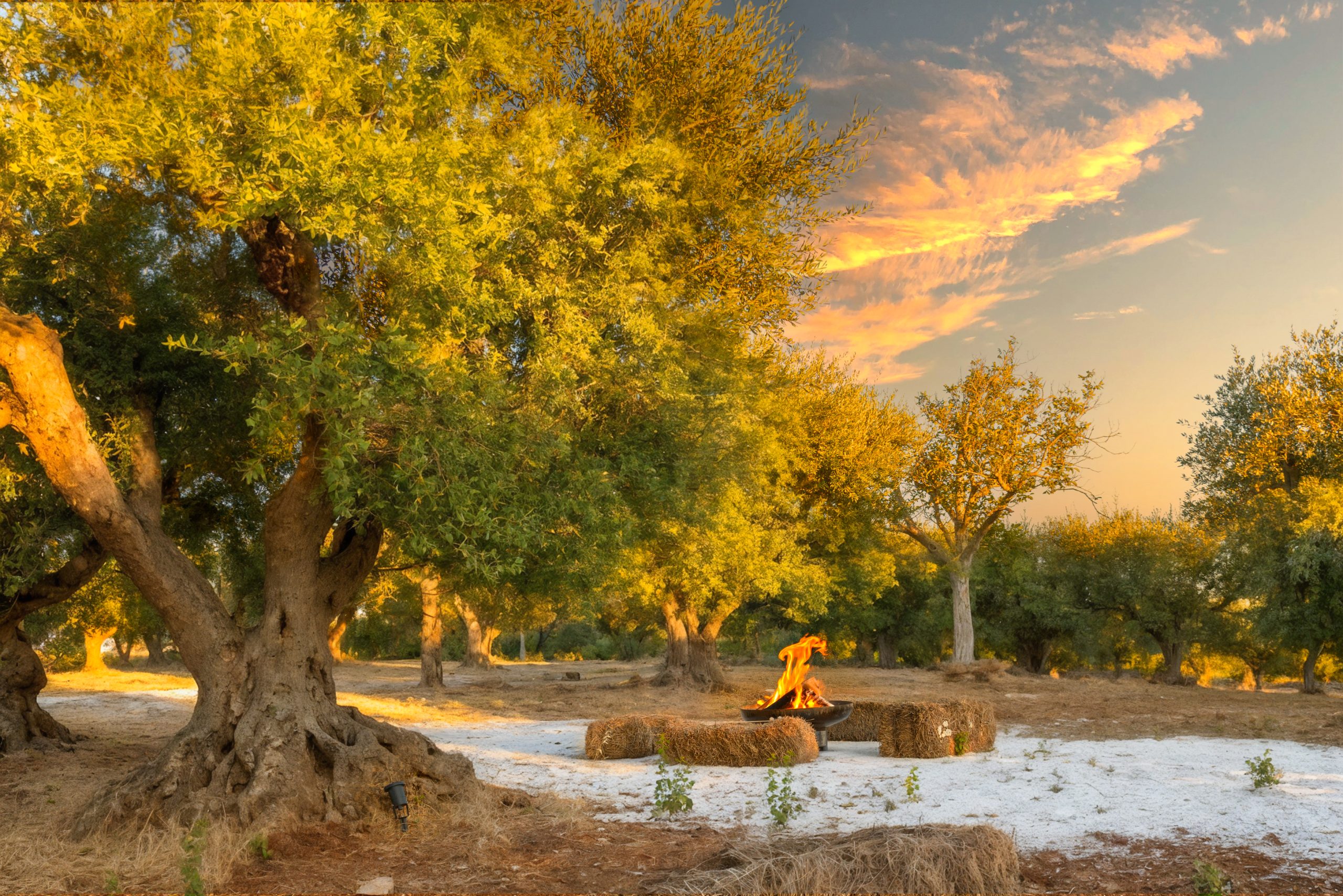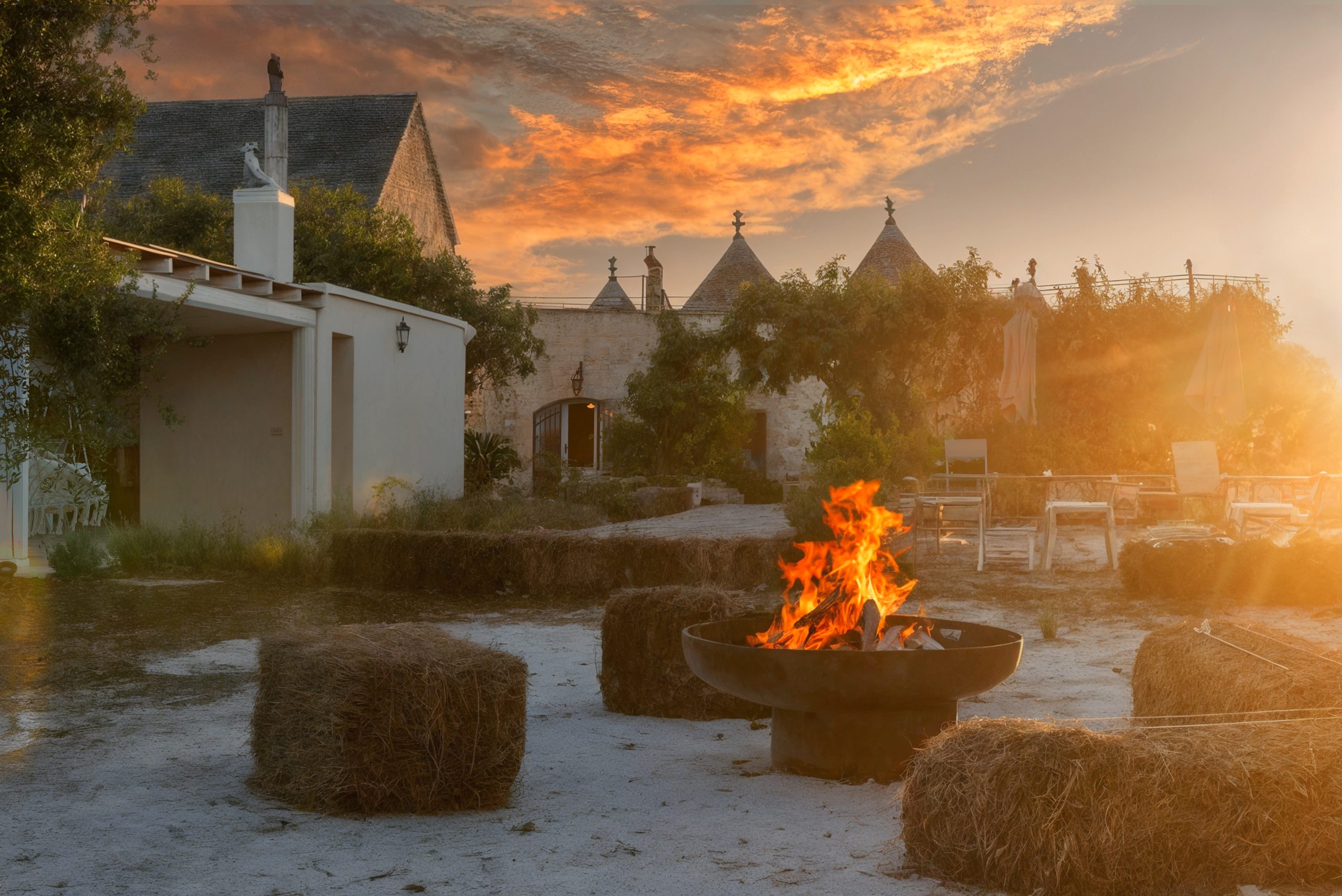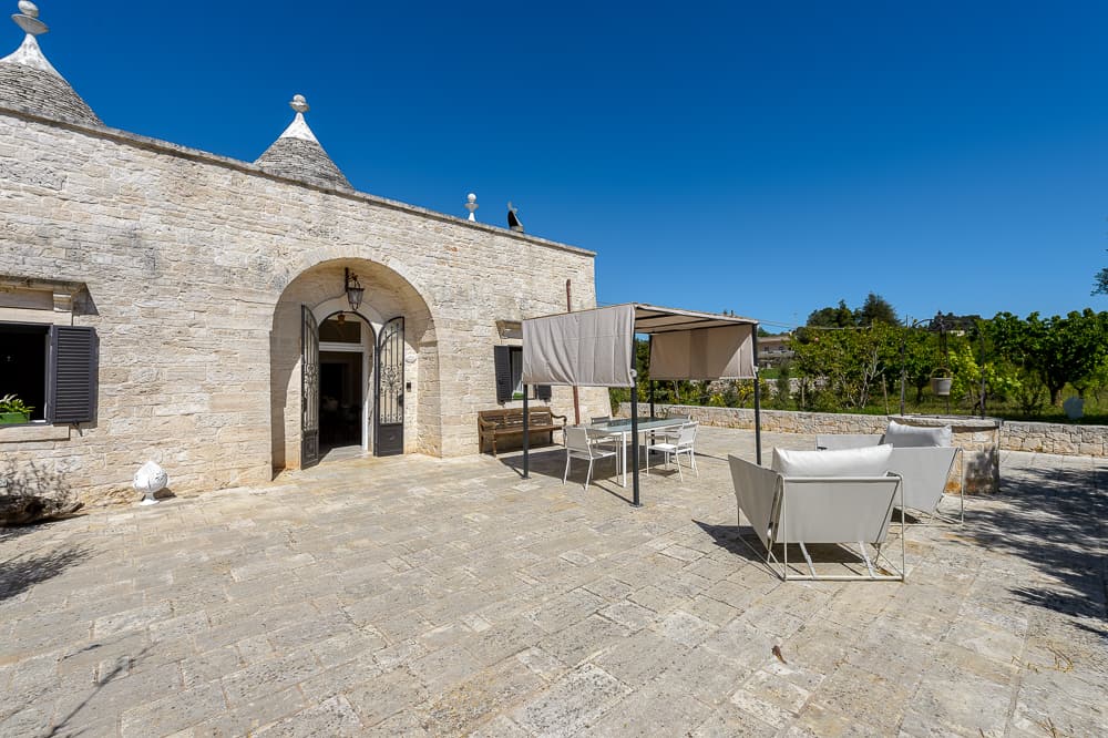 Per le cene estive all’aria aperta gli ospiti potranno godere di un barbecue , di un tavolo da pranzo e di varie sedute relax. L’antica Aia di pietra, che in passato serviva per battere e ventilare le spighe di frumento e per separare la paglia dal grano è sicuramente il punto piu bello dove rilassarsi e rivivere il passato. L’esperienza in questi trulli sarà indimenticabile e ancora più emozionante anche grazie al piccolo orto  dove i nostri ospiti potranno accedere e raccogliere gli ortaggi.