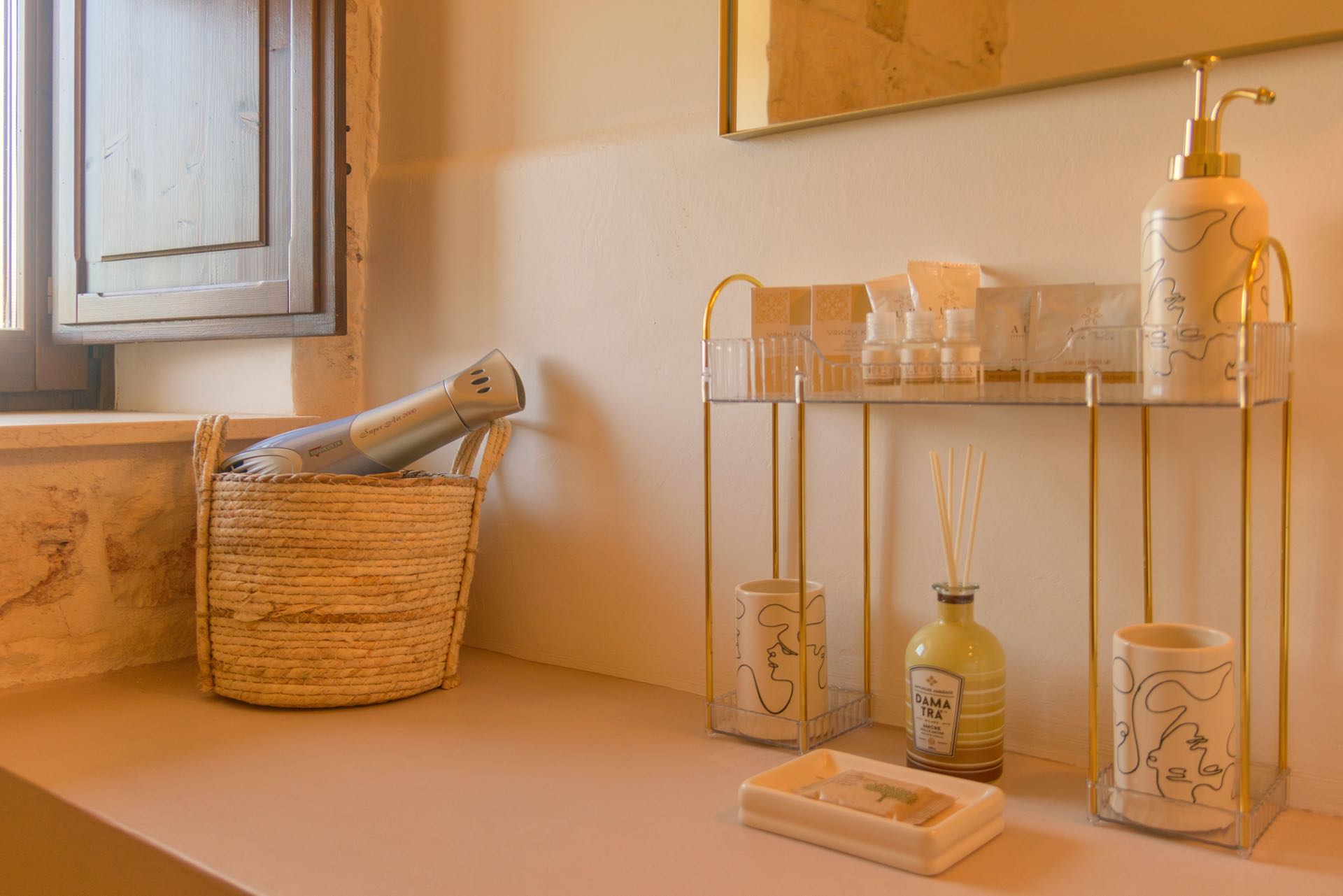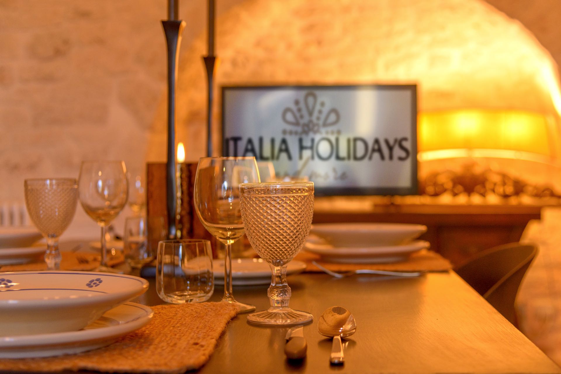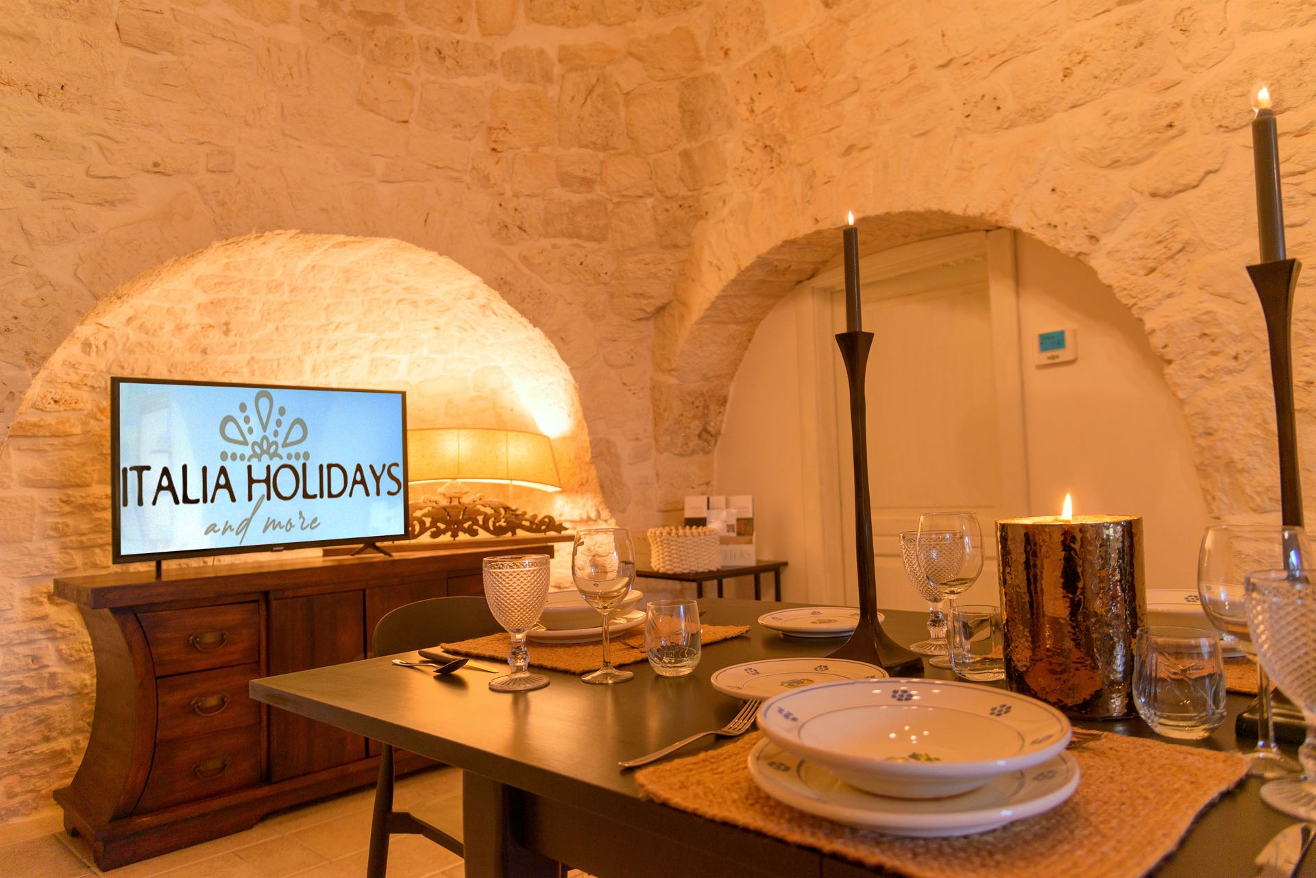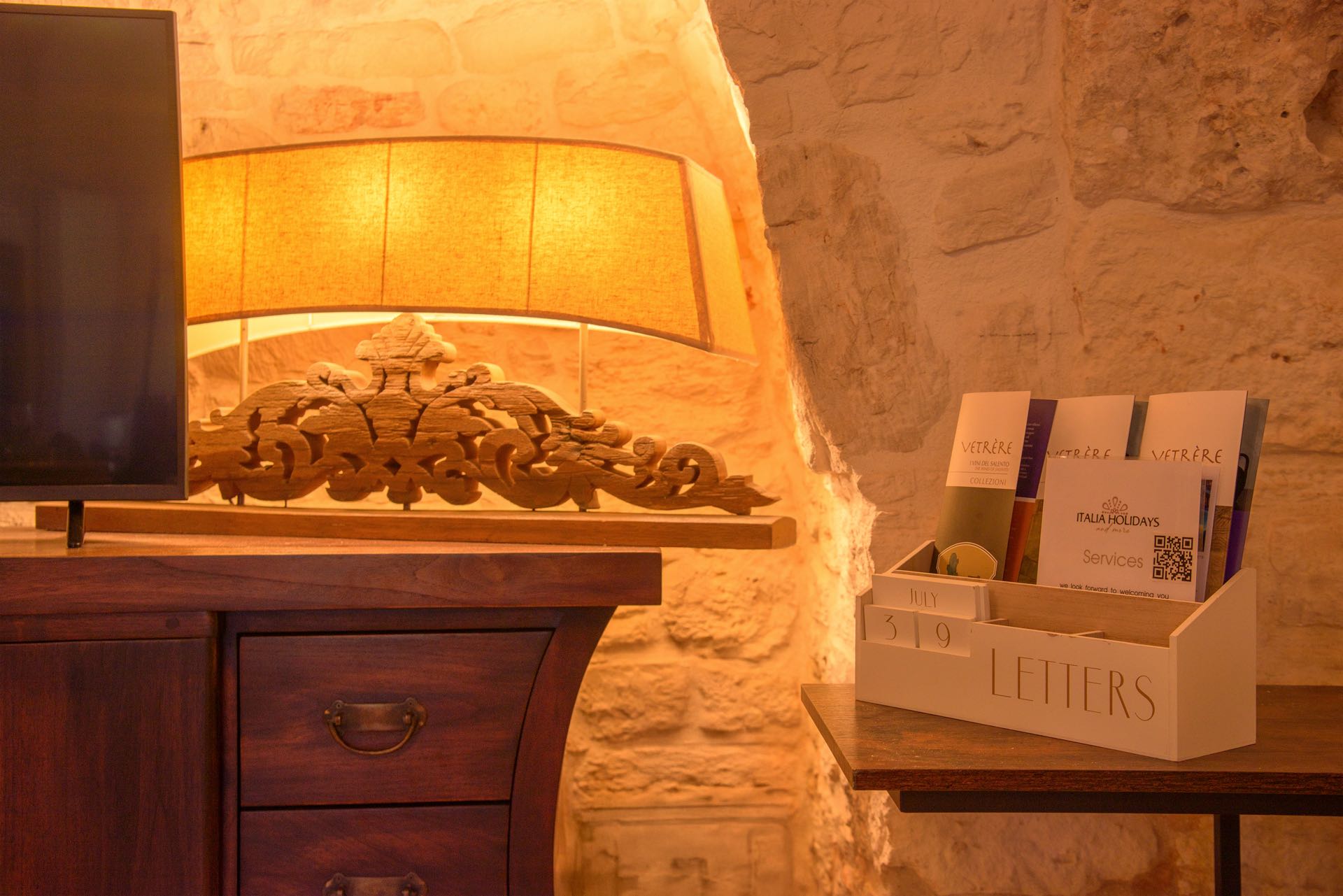 Nonostante lo stile rustico delle pietre a secco, l’ambiente è intimo e di charme arredato con gusto ed eleganza.