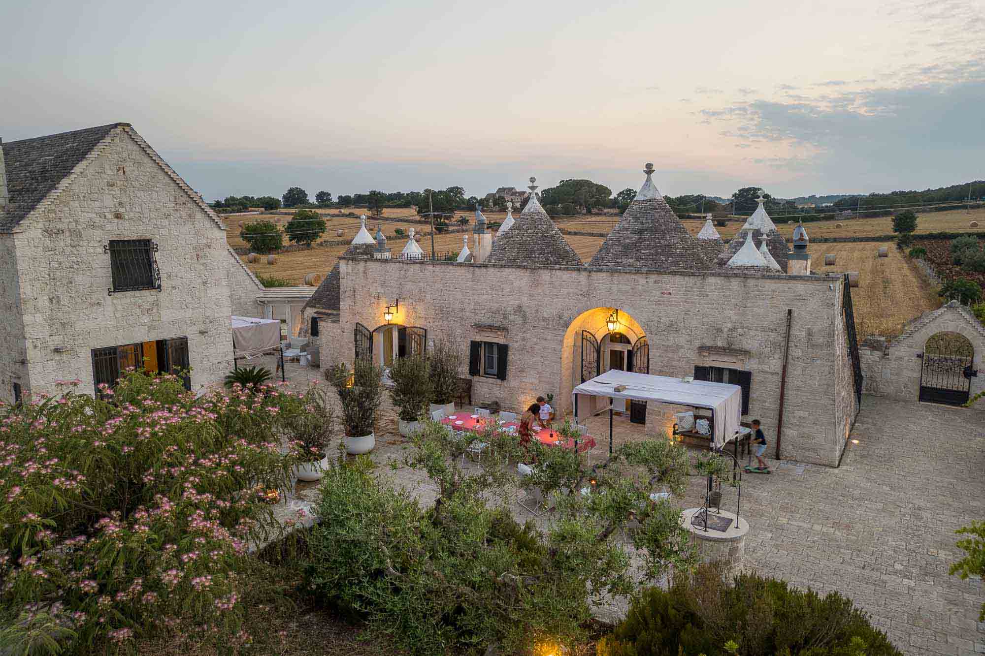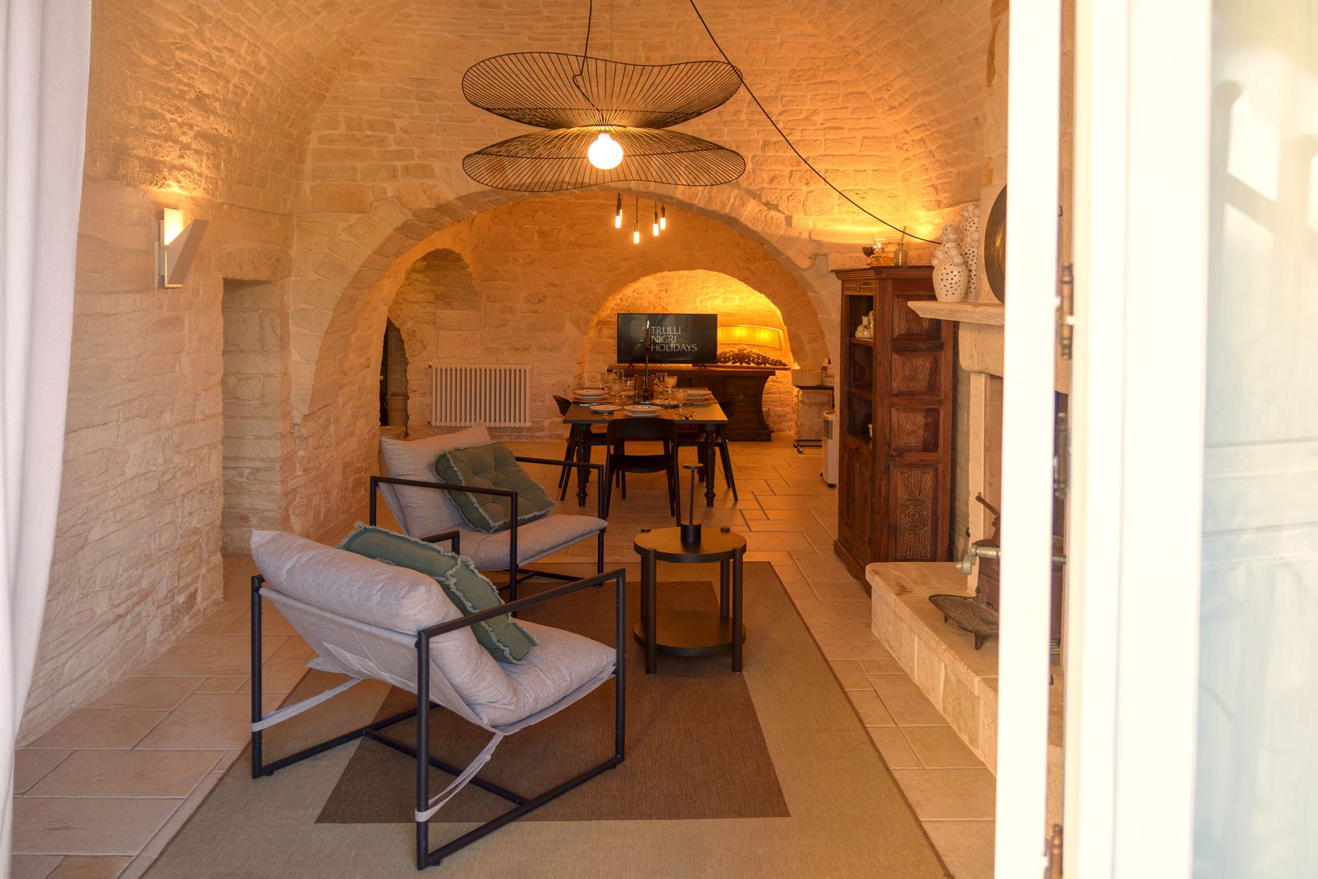 Trulli NIGRI Holidays è un’antica struttura in pietra immersa nella splendida campagna della Valle d’Itria, dove il verde delle colline circostanti incontra il bianco della pietra viva con cui è realizzata buona parte della struttura